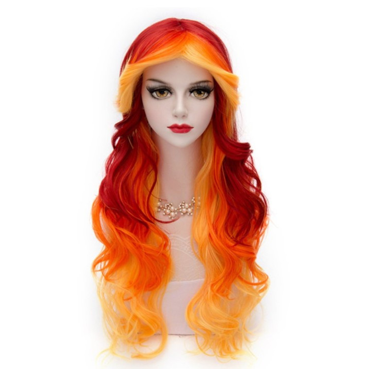 リアルショット中間分け頭長く巻き毛マルチカラーウィッグハロウィンカーニバルウィッグ工場販売卸売価格
