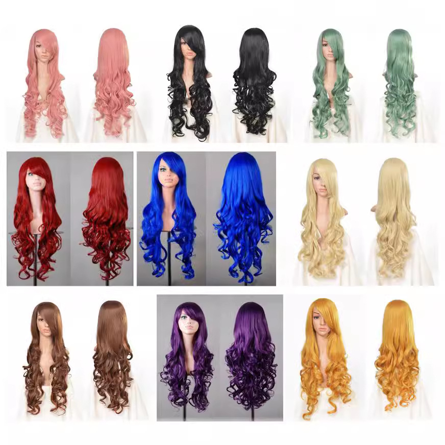 越境電子商取引ユニバーサルウィッグ 80 センチメートル斜め前髪ロングカーリーヘアエアカーリー高温シルクマルチカラーカーリーヘア COS アニメ