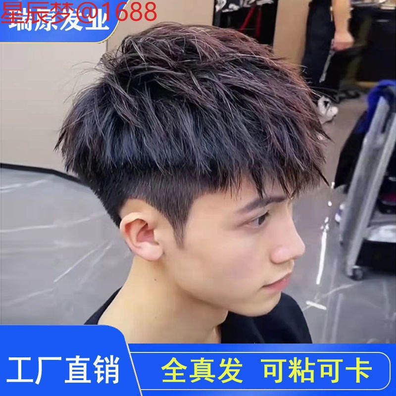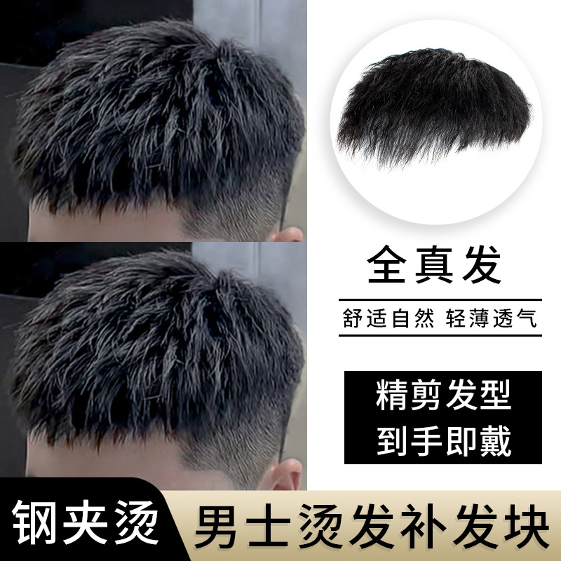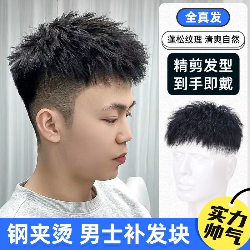 男士假发真人发丝假发男短发钢夹烫隐形韩版纹理烫网红男生补发片