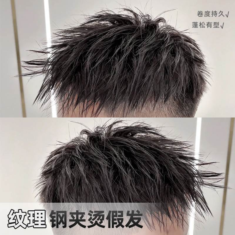 男性用ショートヘアウィッグ、スチールクリップパーマウィッグ、韓国風ハンサムモーガンパーマ、テクスチャードパーマ、男性用バイオスカルプリアルヘア