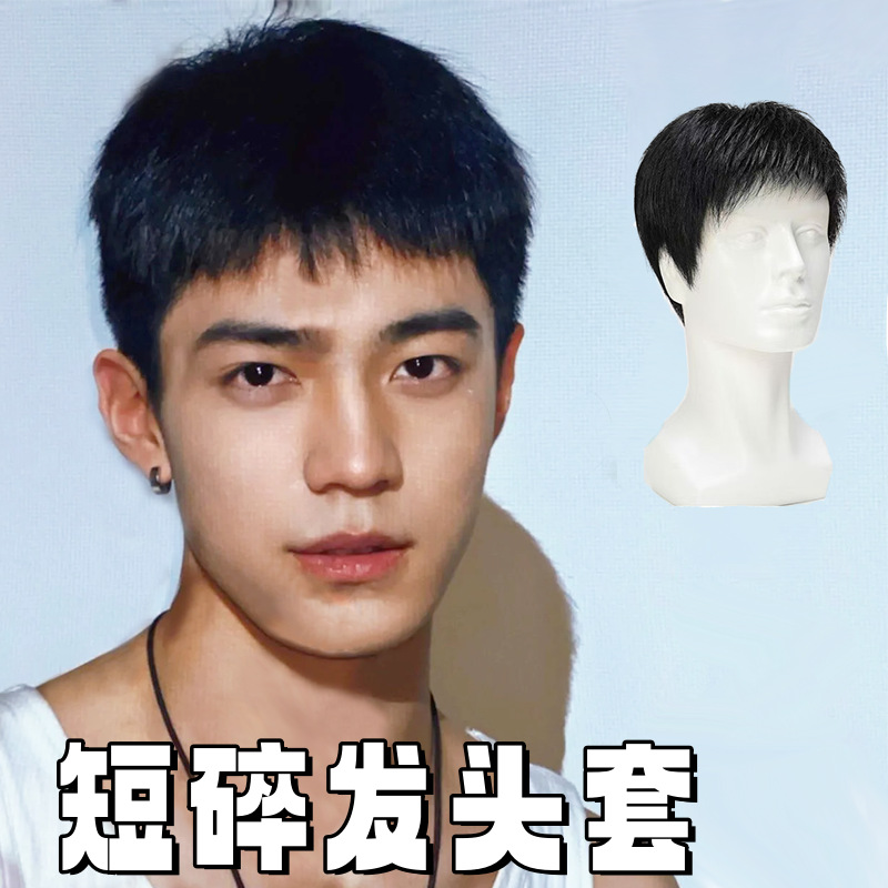 韓国風日常用ふんわりカットメンズウィッグ、クロスボーダーメンズウィッグ、フルヘッドタイプ、若々しいショートヘアウィッグ