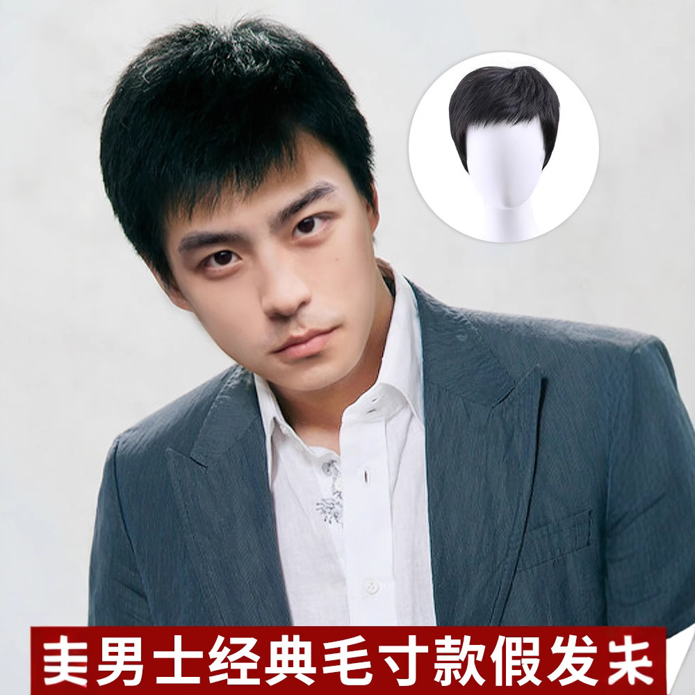 3号ネット+ディクシアンメンズヘアピース許昌かつら工場人毛隠し白髪隠し地中海型薄毛ショートヘア