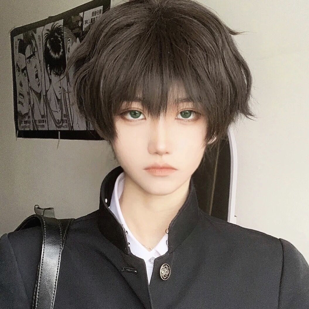 伯楽かつら男短髪黒茶色日系少年感自然ふわふわネット赤かっこいい正太cos全頭カバー