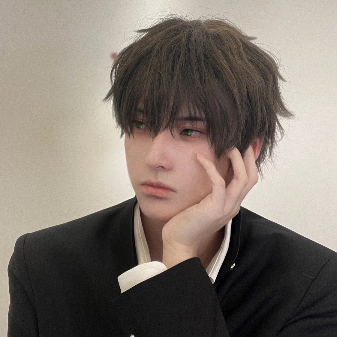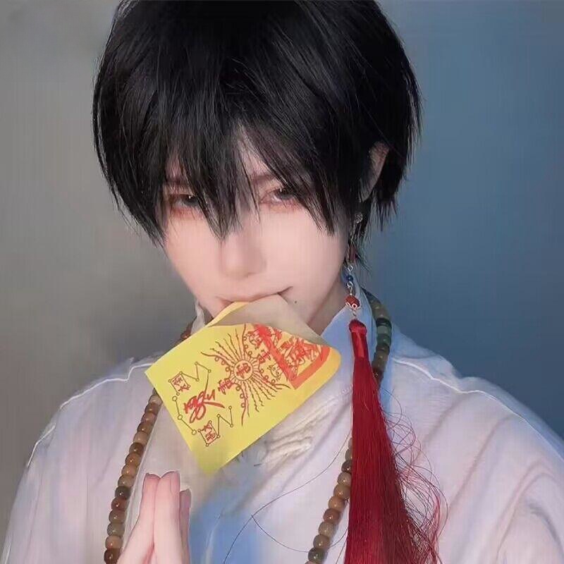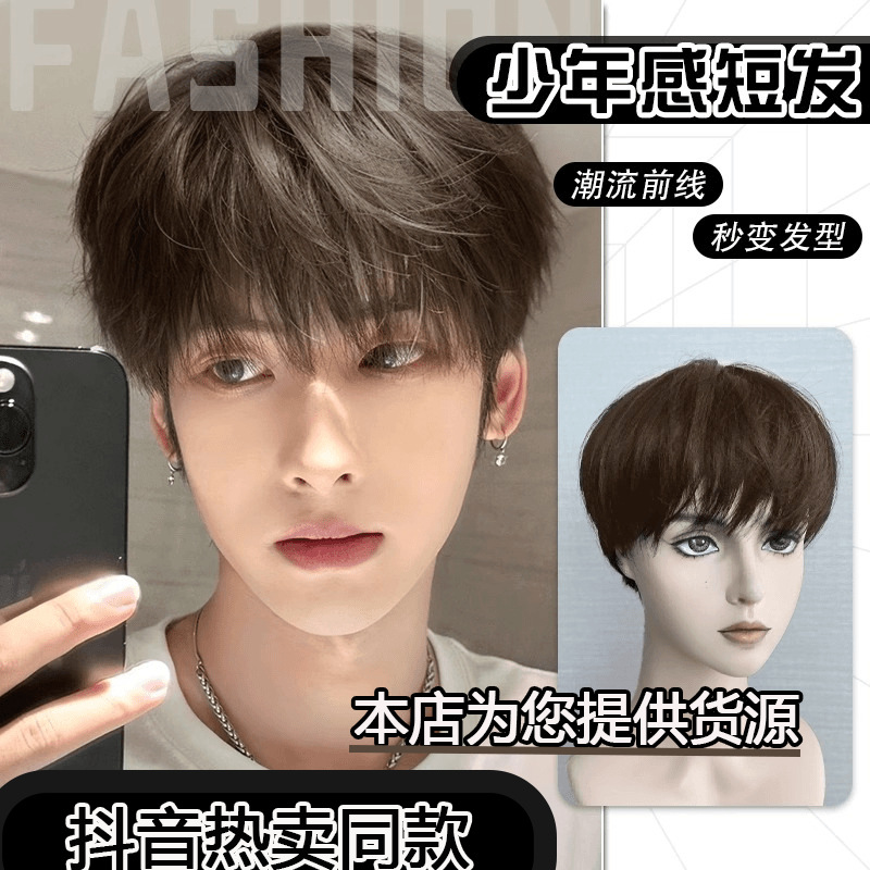 伯楽かつら男ショートヘア黒茶色日系cos少年感ネット赤格好いい正太基男ふわふわ毛全頭