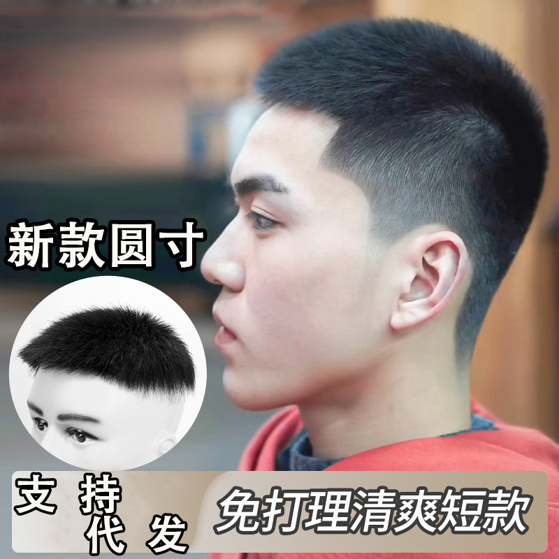 郭徳剛と同じスタイルのメンズウィッグ、ショートヘア、極薄バイオレザーポイントバックル、通気穴、栗の頭のウィッグ