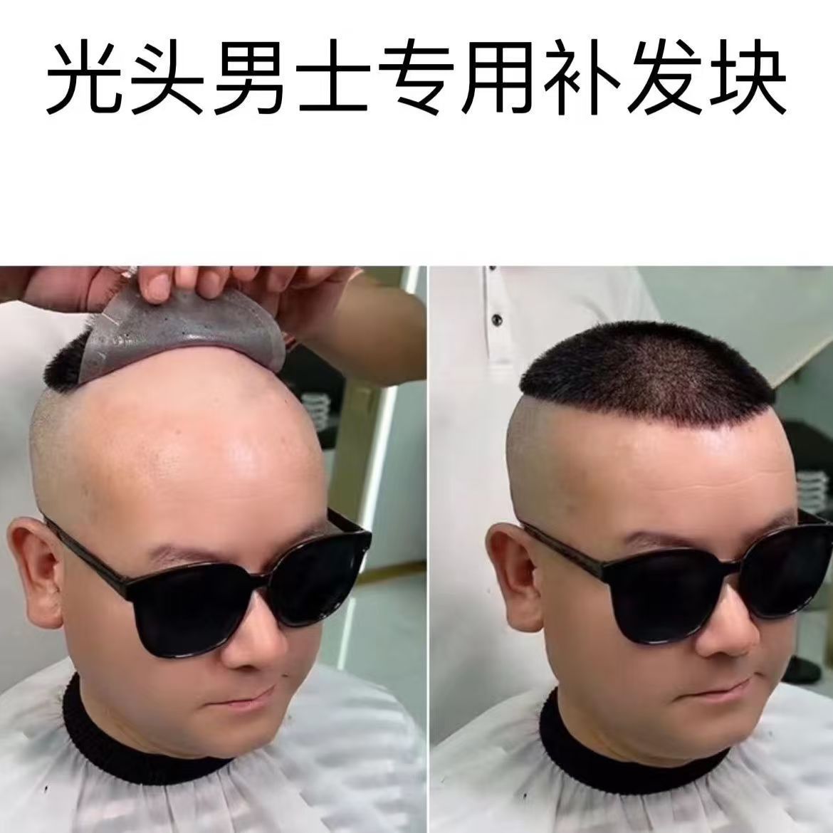 かつら男短髪全真人髪レスリーパーマの頭の上に髪を補充します。
