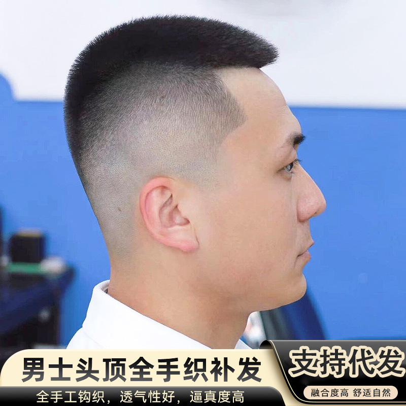 男性のかつらのショートヘアは本当にかっこいいです。見えない頭の上で髪を直します。白髪を隠します。