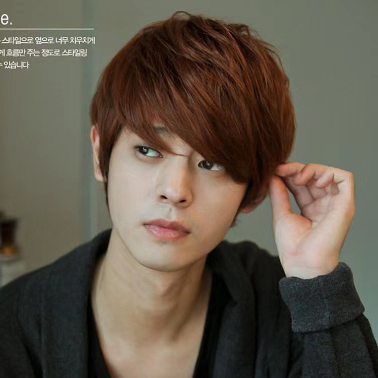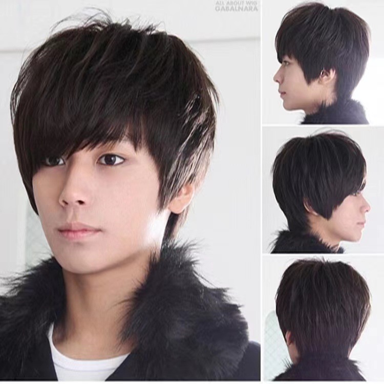 男性用ウィッグ、フルヘッドカバー、男の子用微細カットカバー、ショートヘア、前髪、韓国風ハンサムメンズデイリーふわふわヘアカバー
