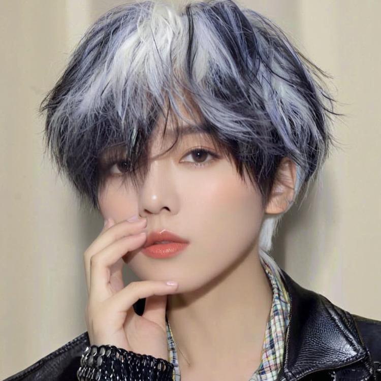 かつらの男子学生のショートヘアのハンサムなネットの赤いタイプの頭は前髪の学生の頭をつぶします。