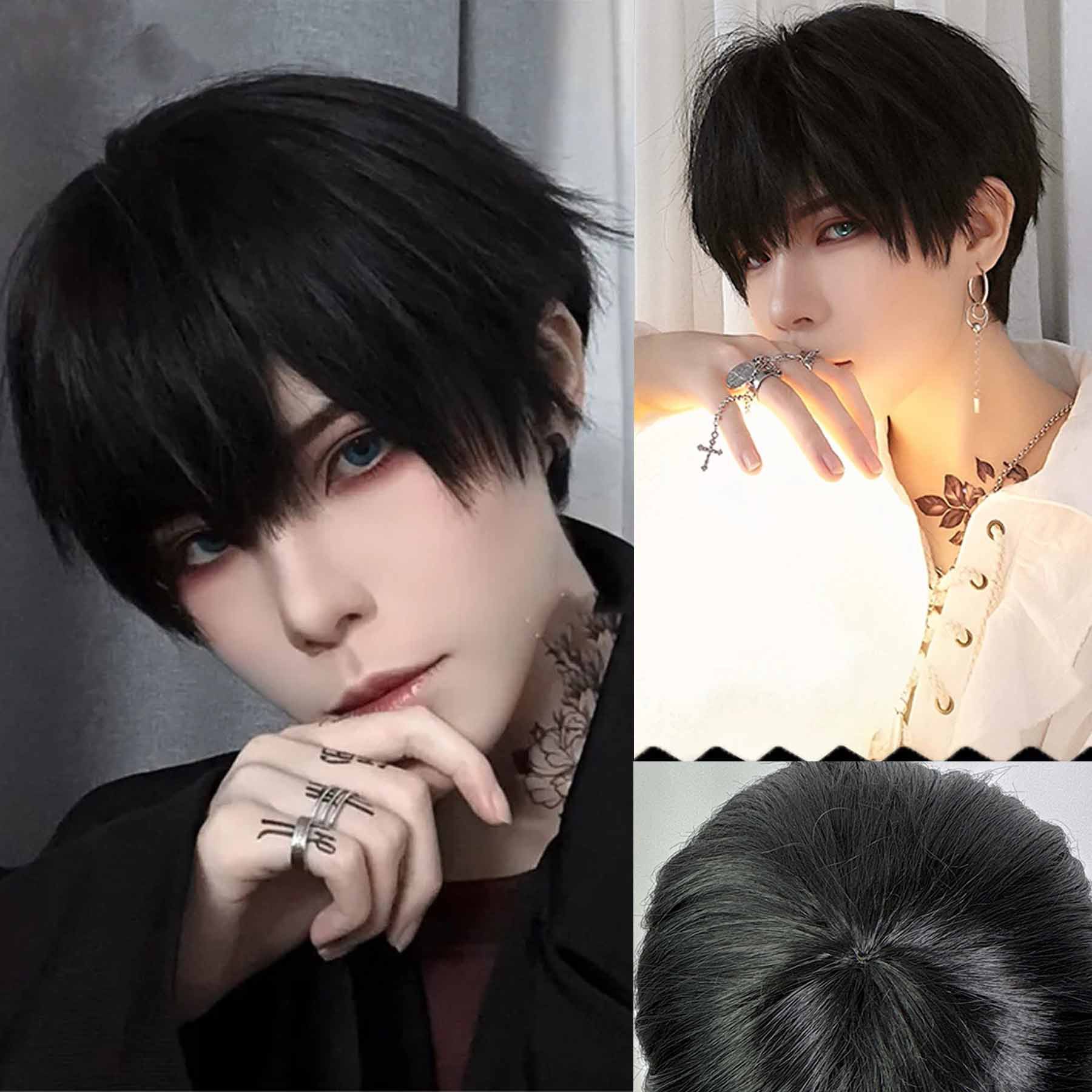 TEMU越境人気商品 ウィッグ メンズ ファッション 黒髪ショートヘア 高温ファイバー製 フルウィッグ 即納 一件代発送