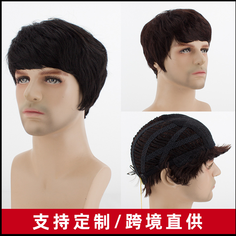 外国貿易メンズウィッグショートヘア男性と女性に適した工場直販スポットファーストヘア通気性フラットヘッド耐熱壊れ髪