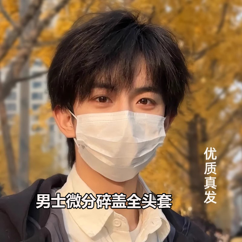 男性用ウィッグ、韓国風デイリーマイクロカットカバー、フルリアルヘア、ナチュラルふわふわ、トレンディでファッショナブルなウィッグカバー