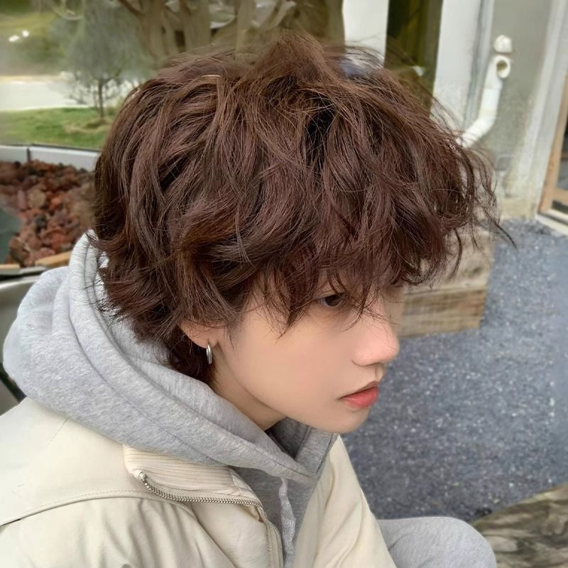 かつら男子ウール巻き短髪日本錫紙パーマレスリー巻き自然ふわふわ男性シミュレーション全頭カバー