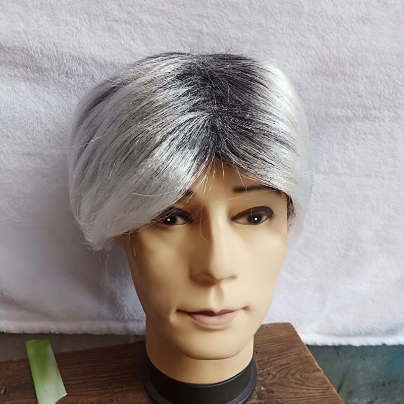 中高年かつら花白色男性短髪かつらがリアルで軽やかで快適なかつらセット卸売りスポット