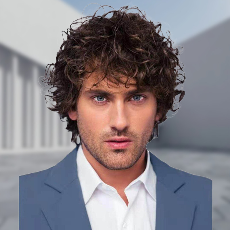 欧米の男性のかつら前髪が反り返ってショートヘアがふわふわしている濃い茶色の外国貿易かつら