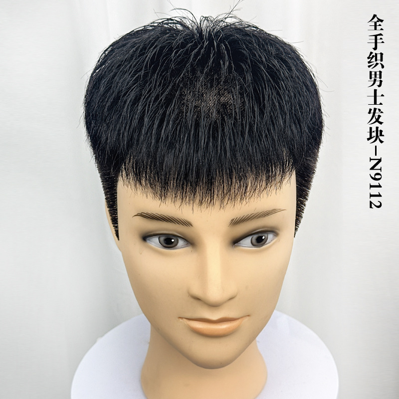 【中年男性のショートヘア】許昌昌栄全手織り本物の髪のフルヘッドギアはリアルで通気性があり、メーカーから直接仕入れられます