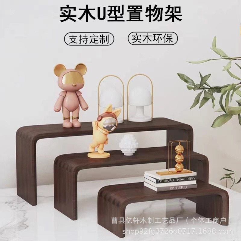 木のU型の物置棚の北欧風のデスクトップの展示棚の客間の寝室の多層の人形の展示棚は高くなります。