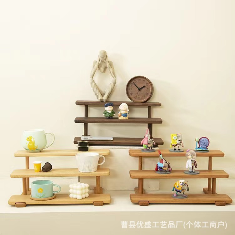 日系木製デスクトップ棚化粧台化粧品香水収納棚レゴ人形コップ展示棚