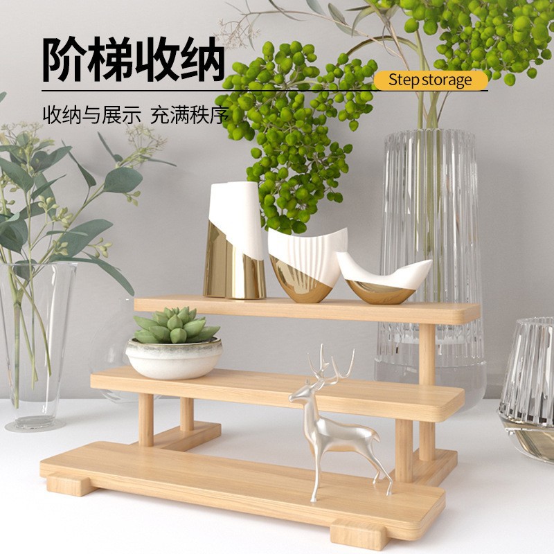 木製卓上化粧品香水収納ラック、無垢材ケーキディスプレイスタンド、フィギュア・レゴ収納ラック、多機能