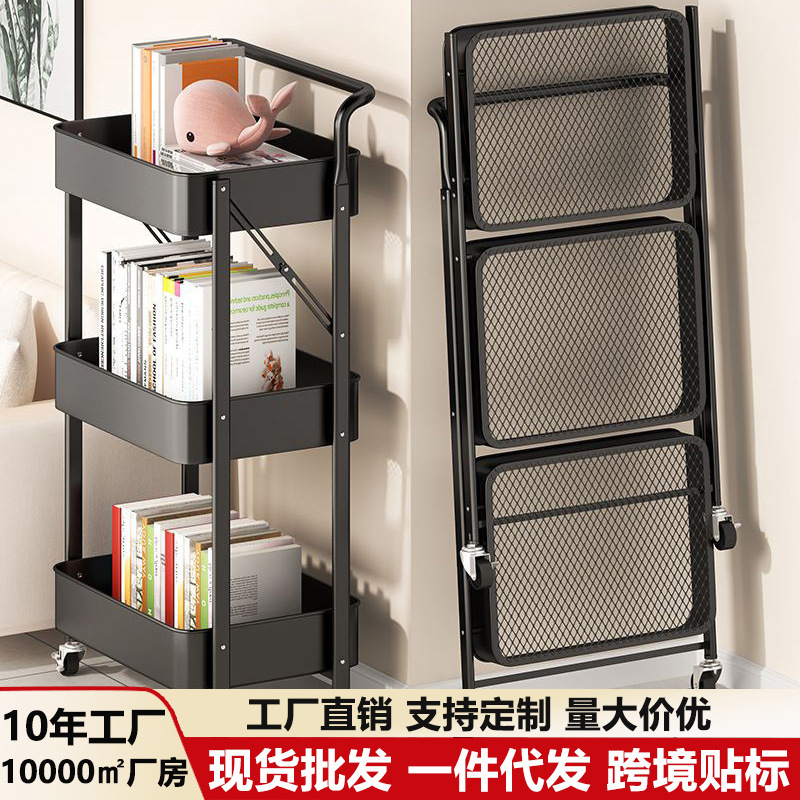 折りたたみワゴンラック多層床置きプーリーリビングキッチンスナック野菜本整理収納棚