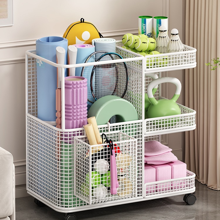 ヨガマット収納バスケットホームフィットネススポーツ用品収納ラック車輪付きおもちゃバスケットボールバドミントンラケット収納ラック