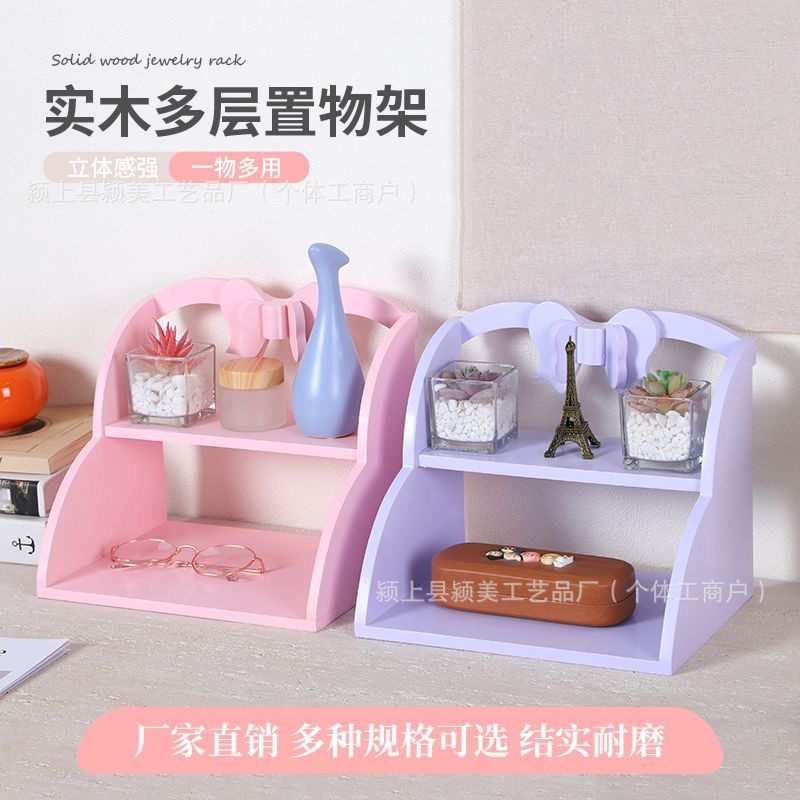 木製物置棚二重ハンドブラインド箱展示棚化粧品文房具収納棚蝶結びデスクトップ物置棚