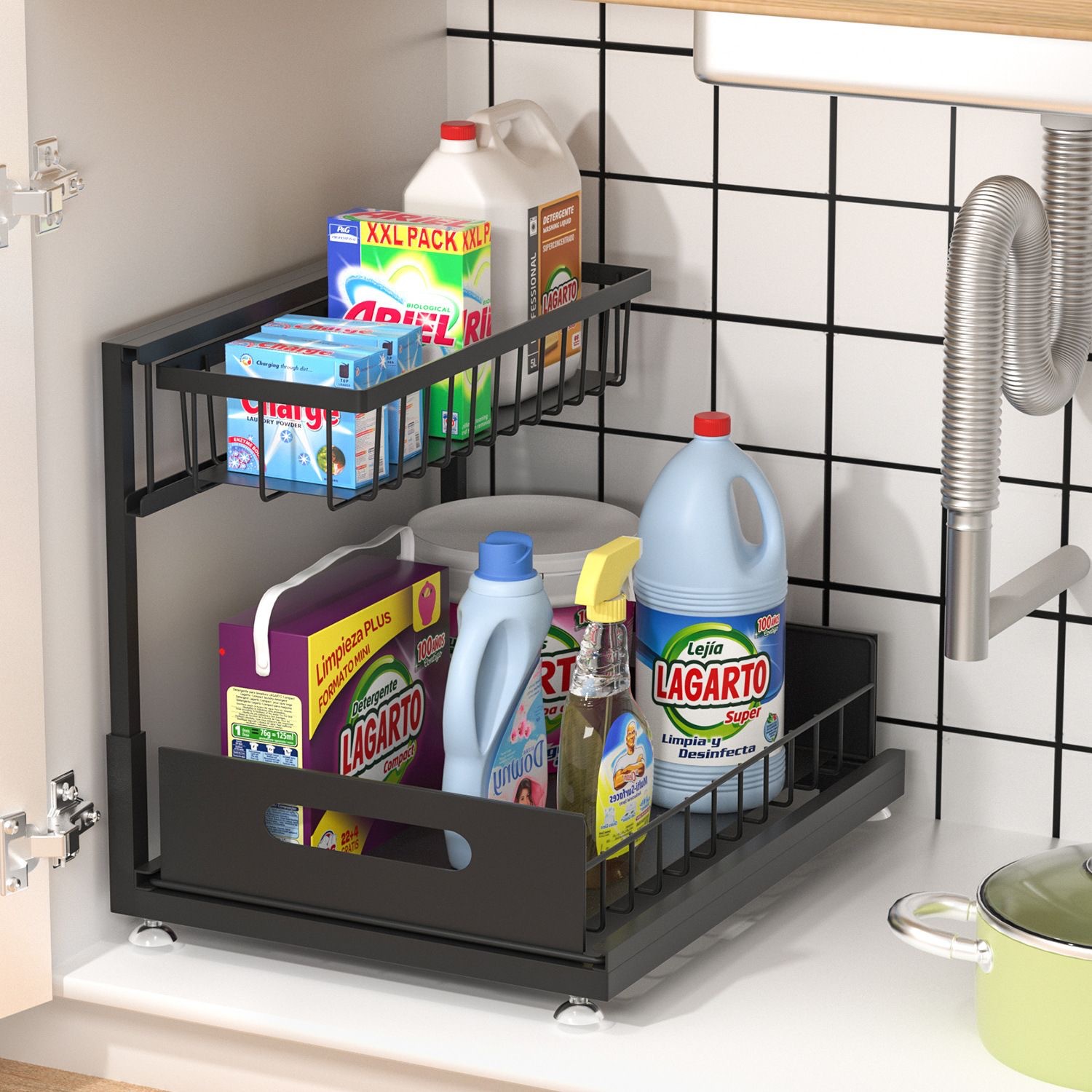 引き出し式シンク下収納ラック、キャビネットバスケット、キッチンキャビネット収納ラック、引き出し式調味料ディッシュラック