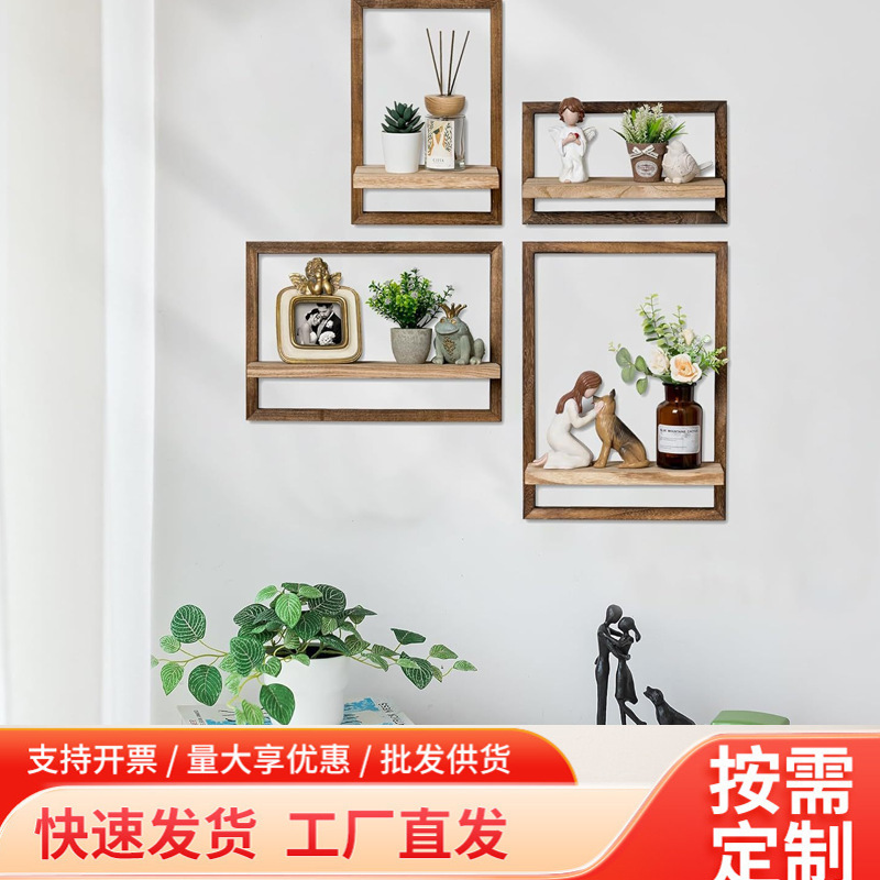 現物の実木の壁の置物棚の田園の風格の四角形の木製の客間の装飾棚の壁の組み合わせのペンダントの卸売り