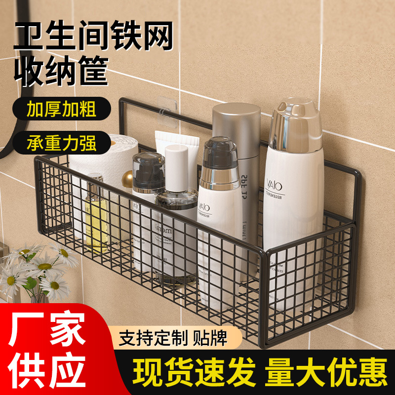 穴のない取り付けバスルーム鉄メッシュ収納バスケットアップグレードされた壁掛け収納ボックスキッチン壁収納ラック良いもの