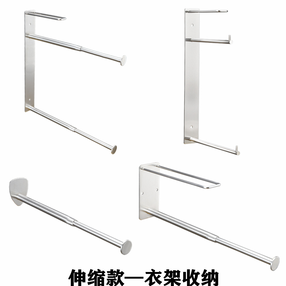 伸縮式ハンガー収納神器ステンレス壁掛けベランダ家庭用穴なしハンガー多機能整理棚