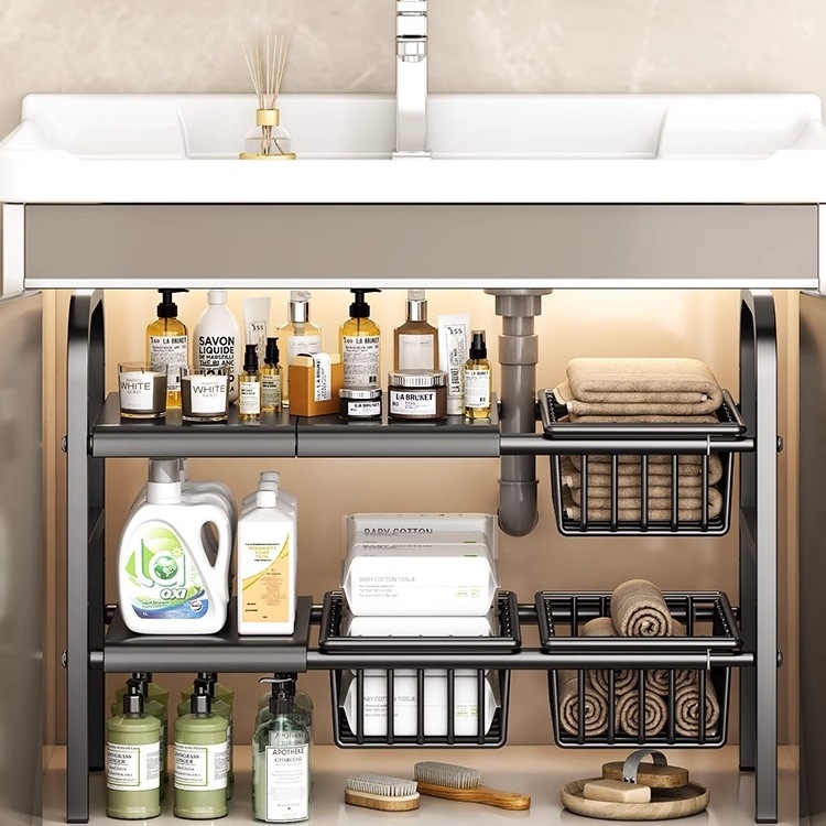 キッチン格納式シンク下収納ラックキッチンキャビネット収納収納ラック多機能ポットラックキャビネット内の階層ラック