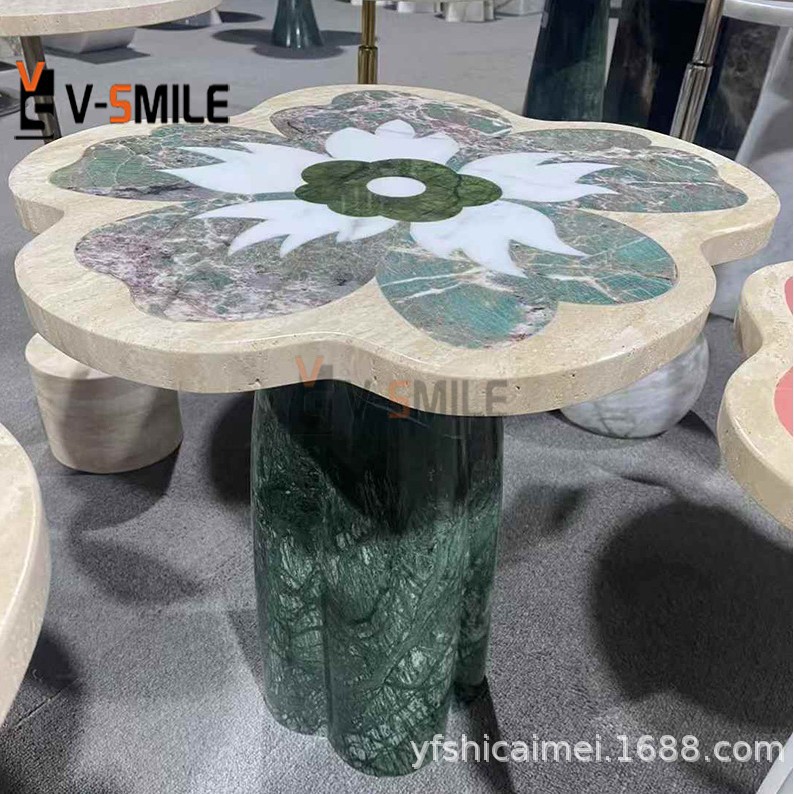 マルチカラーの花の形のウォータージェットサイドコーヒーエンドテーブルコーヒーテーブル