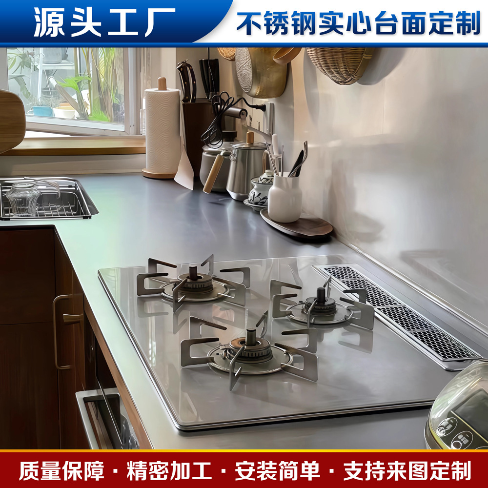 304ステンレスサンドブラスト中実床面防掻花キッチンフロスト霧面乱紋島台一体カスタム加工