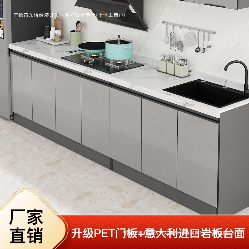 スレートキッチンキャビネット家庭用シンプルなオールインワンステンレス鋼ストーブキャビネットPETドア一体型キッチンキャビネットレンタルシンクキャビネット