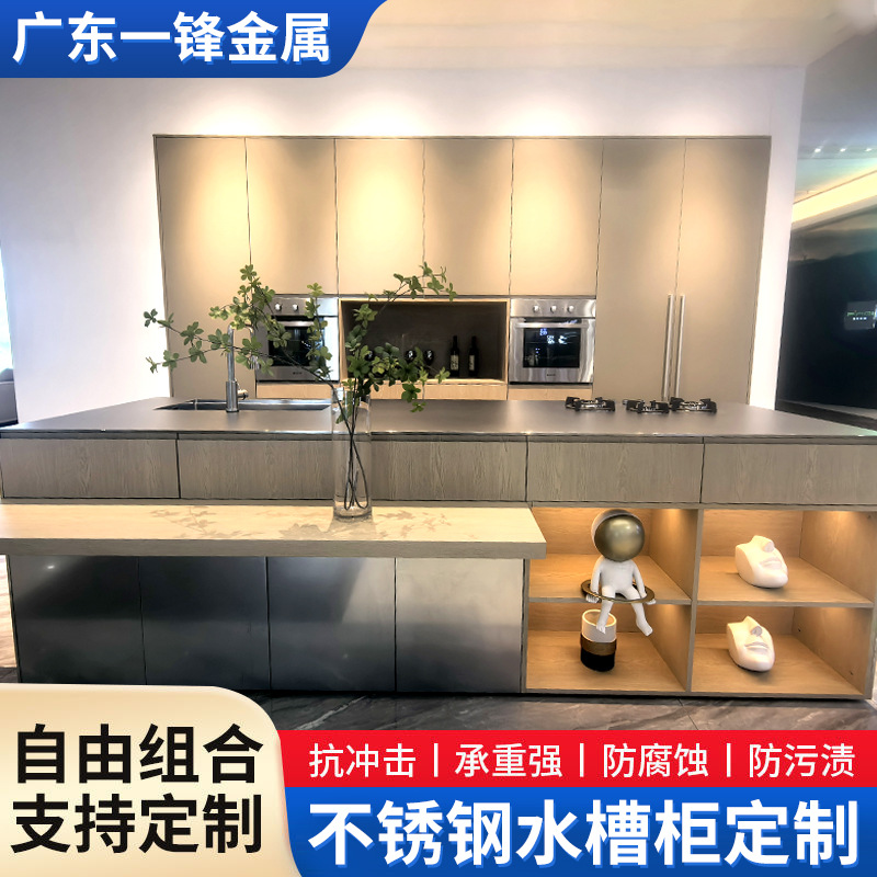 ステンレス鋼ソリッドトップホームキャビネットキッチンキャビネットストーブキャビネット食器棚シンクキャビネット一体型金属キャビネット