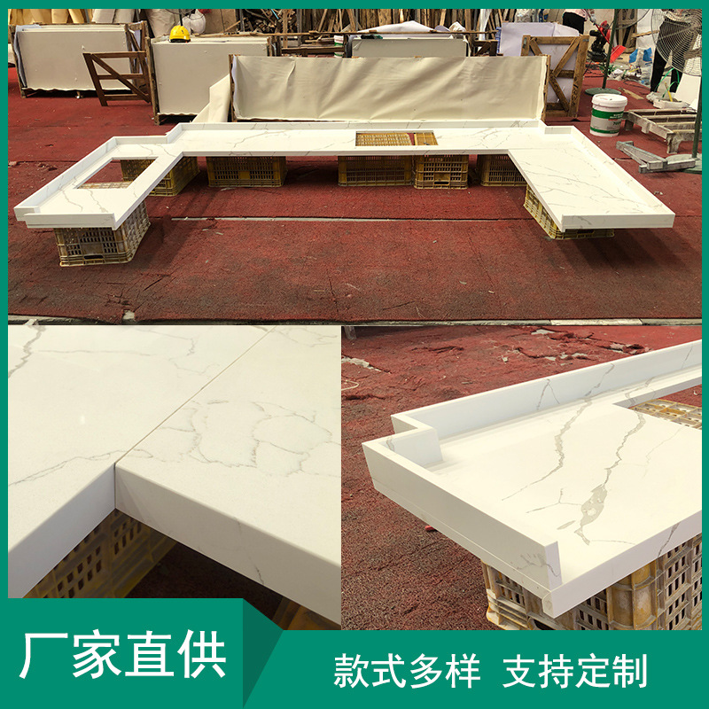 広東省宇西人造石供給工装ビル事務台台面魚腹白石英石壁面テーブル