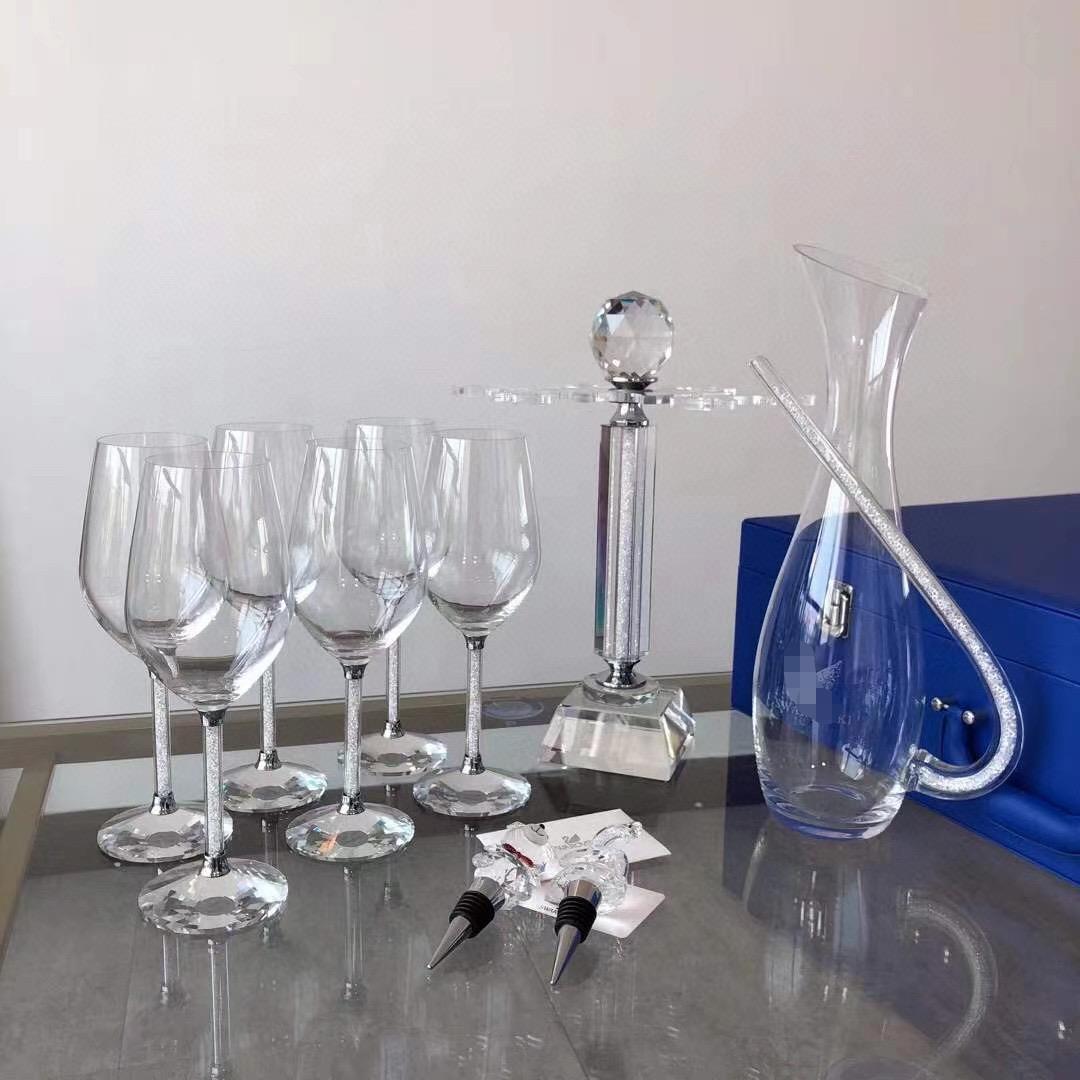 施家水晶ガラス酒栓覚醒器酒架ヨーロッパ式ワイングラス高足カップシャンパンカップ皮箱10点セット