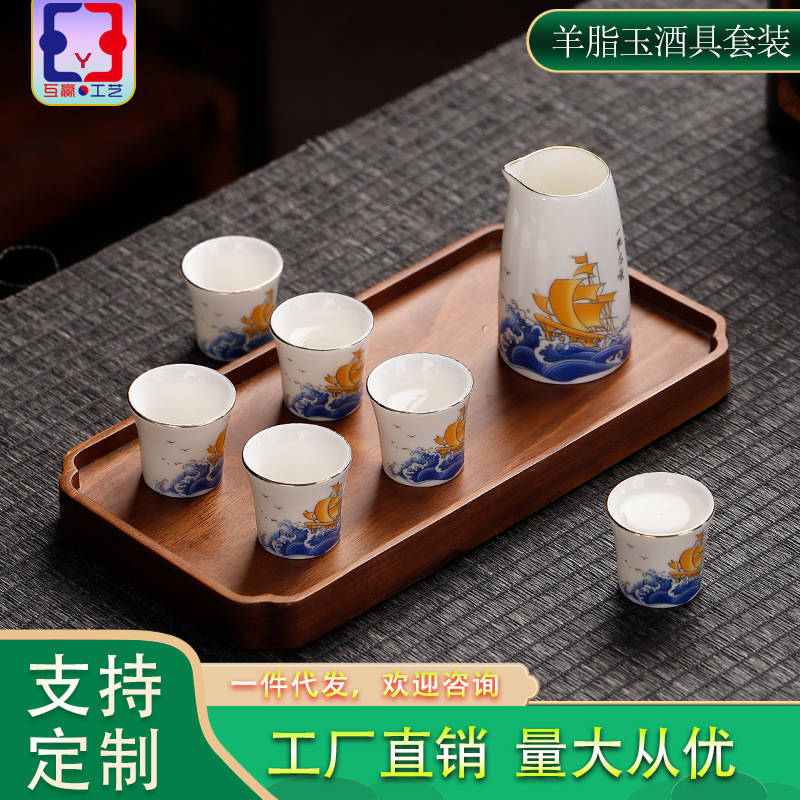 陶磁器の白酒カップセット、酒器セット、酒カップ、酒分配器、アンティーク調の小酒カップ、家庭用一口カップ、組み合わせ酒器セット