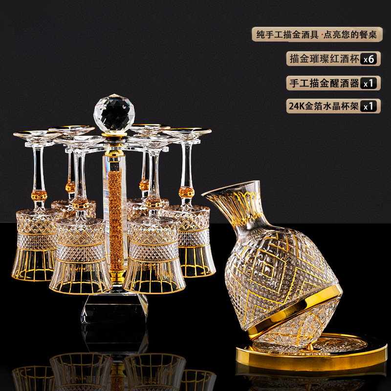高顔値軽豪華描金水晶ワイングラス高足カップセット家庭用回転ジャイロ覚醒器高級酒具