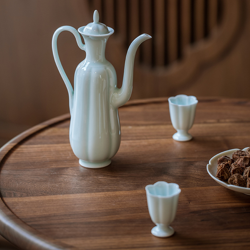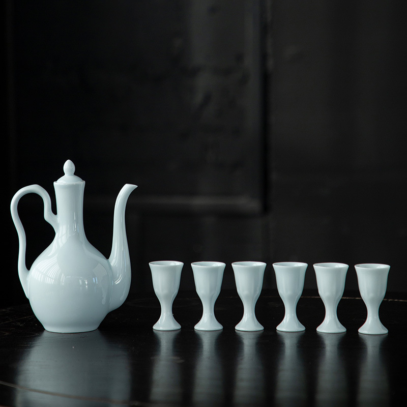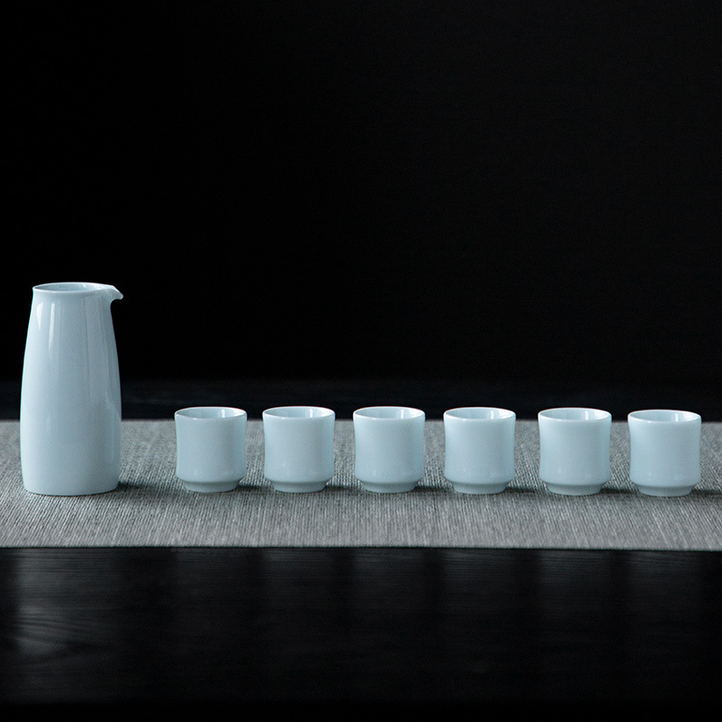 粉青龍泉青磁器陶磁器酒具セット半斤酒壺分酒器白杯高足杯六杯定logo