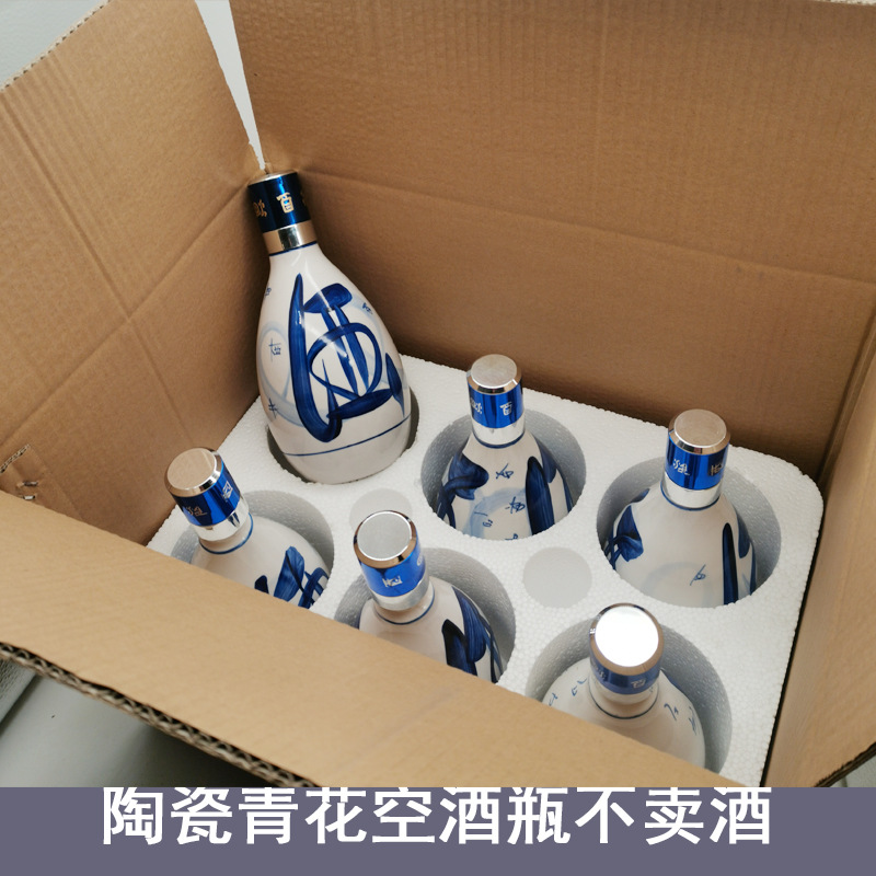 陶磁器の青花の酒の瓶の1斤は中国式の白い磁器の空の酒の瓶の泡を詰めて高級な白い酒の瓶の復古のフルセットを詰めて郵送します。