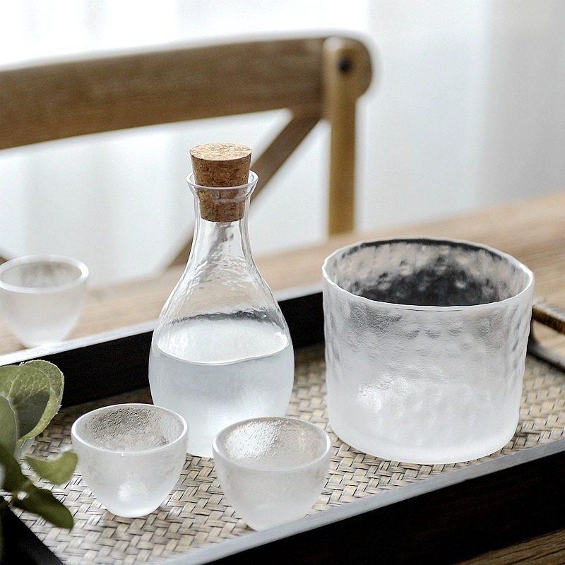 日本式雲霧清酒壺セット家庭用ハンマーガラス温酒壺果酒セット白杯小酒杯