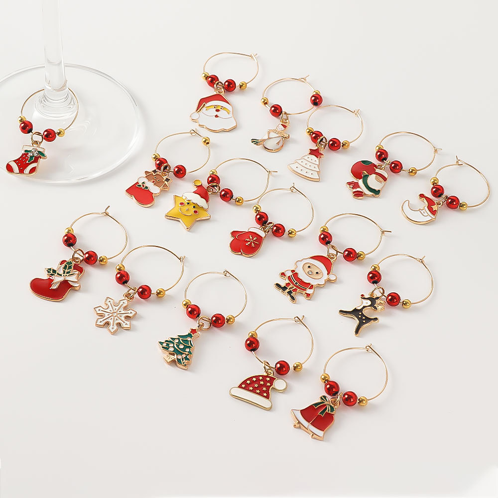 クリスマスグラス識別器6個/セット合金クリエイティブクリスマスシリーズ模様ワインカップリングシンプルなカップ区分器