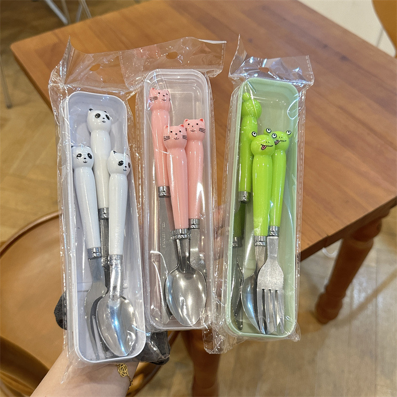ステンレス携帯食器セットアニメ学生箸スプーンフォークかわいい箸三点セットアウトドア旅行