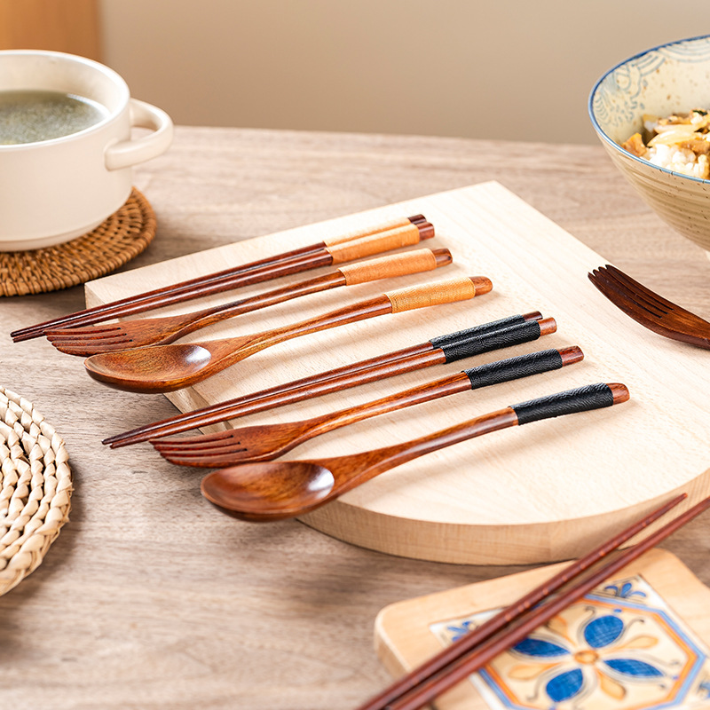 レトロ携帯スプーン箸フォーク3点セット木製食器木製スプーン家庭用箸スプーンフォーク箸セット楠木