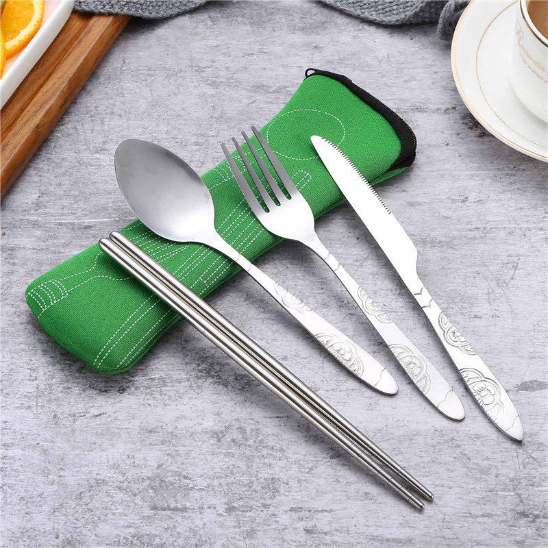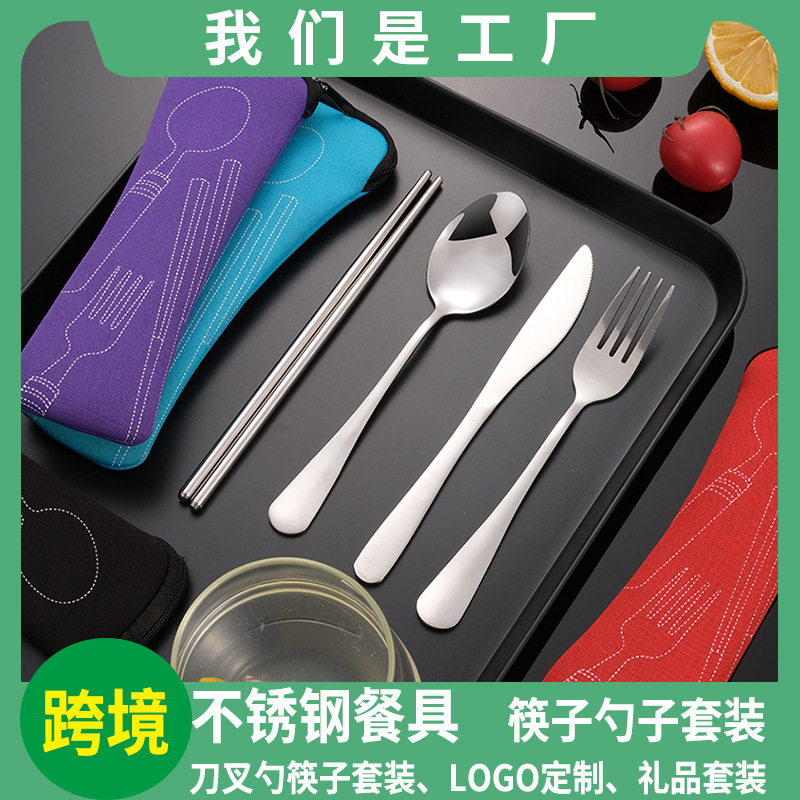 クロスボーダー爆型布袋ステンレス食器4点セット屋外携帯ナイフスプーン箸フォーク食器セット