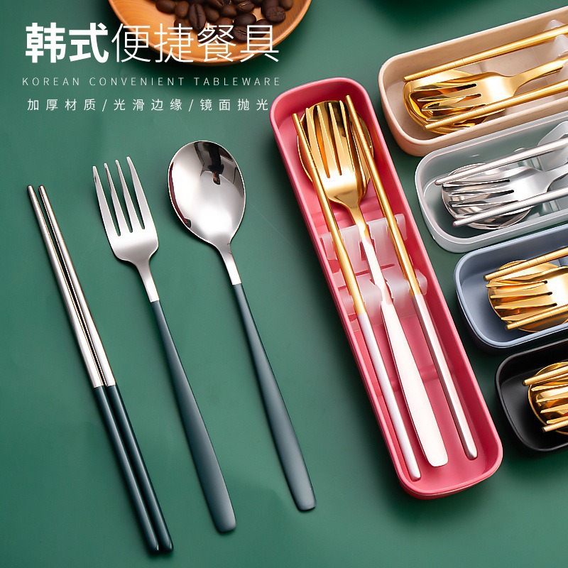 ステンレス食器韓国式携帯三点セットスプーンと箸の屋外旅行収納ケースセットはロゴを印刷できます。