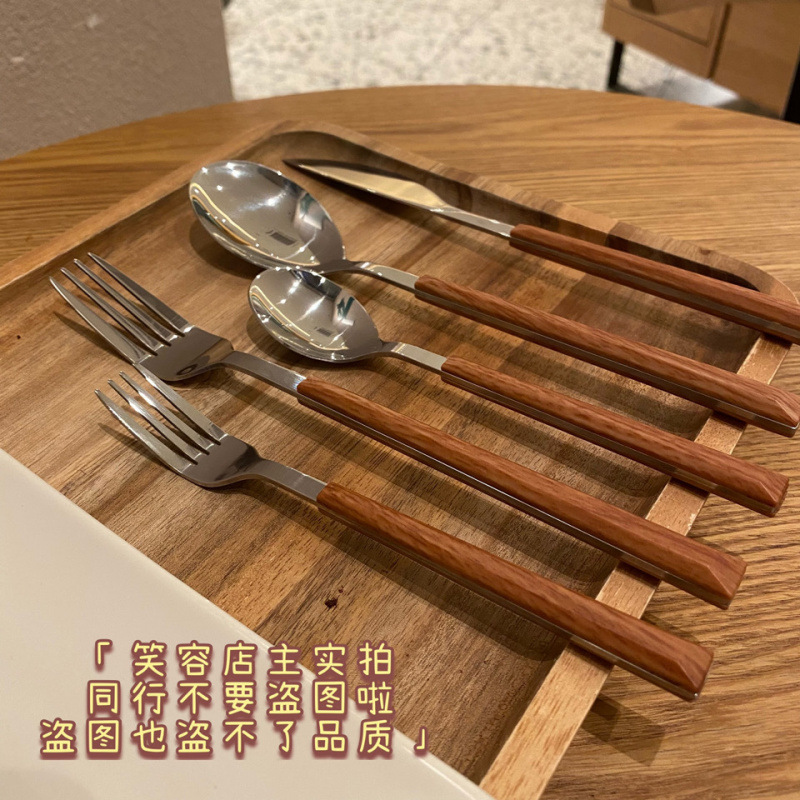 インスタイルナイフとフォーク韓国風木目調ロングハンドルスプーンステンレス食器フォークとスプーン絶妙な木製ハンドルデザートスプーン女性用