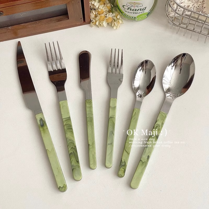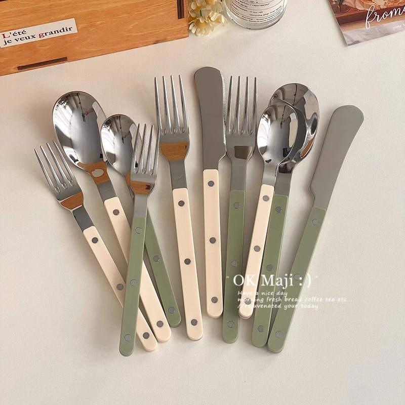 ステンレスナイフフォークスプーン3点セットins风食器セットナイフフォーククリーム风ステーキ洋食ナイフフォークセット