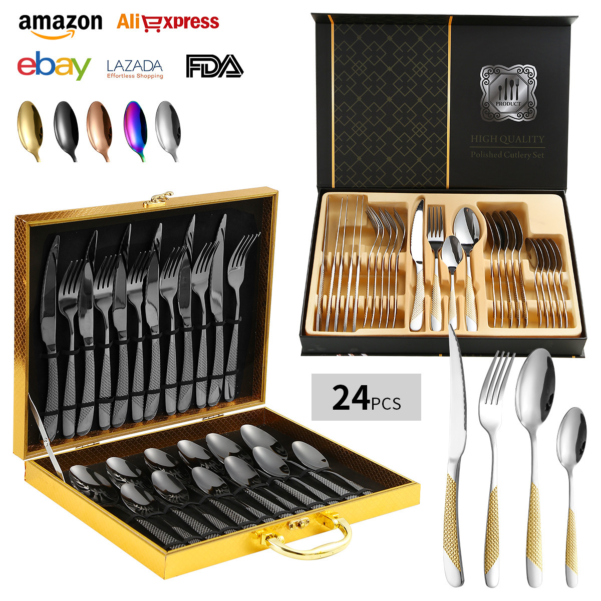 国境を越えたアマゾンのギフトボックス1010洋食ナイフフォークスプーン4セット洋食ステーキナイフステンレス食器24セット